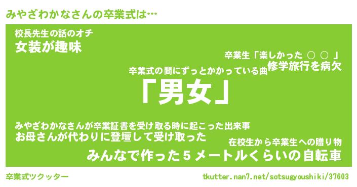 | ヒーロー風カッコイイあだ名 | 『スーパーミヤザワカナ』『天弓騎士ミヤ』 |