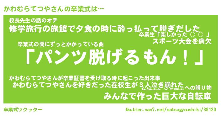 | 胡散臭い通販商品みたいなあだ名 | 『モテモテ間違いなし水晶球…その名も「かわむらてつや」』 |