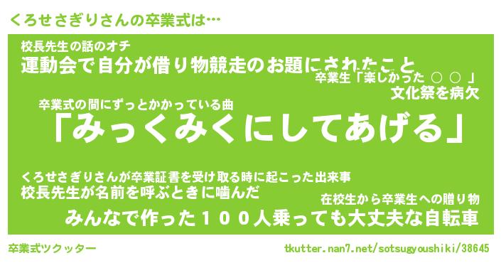 | 男性向けラノベタイトル風あだ名 | 『くろせさぎりの憂鬱』 |