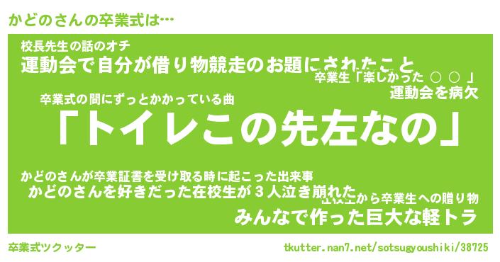 | 伝説のあだ名 | 『伝説のスナイパーかどの』 |