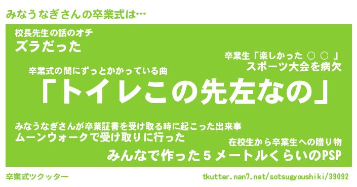 | 伝説のあだ名 | 『伝説のスナイパーみなうなぎ』 |
