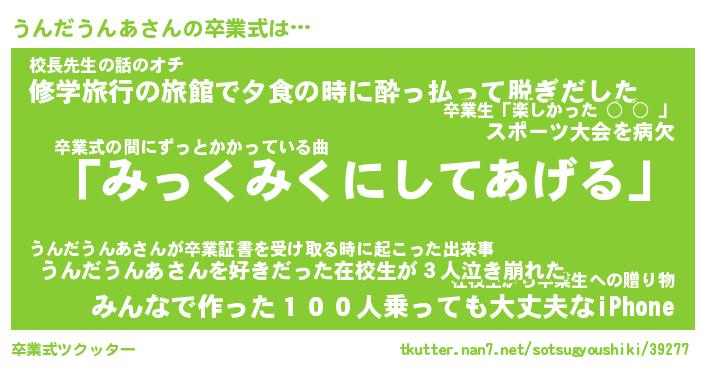 | 伝説のあだ名 | 『伝説のスナイパーうんだうんあ』 |