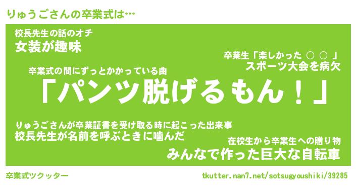 | 意味不明あだ名 | 『ペロリンりゅうご』『永久保存りゅうご』 |