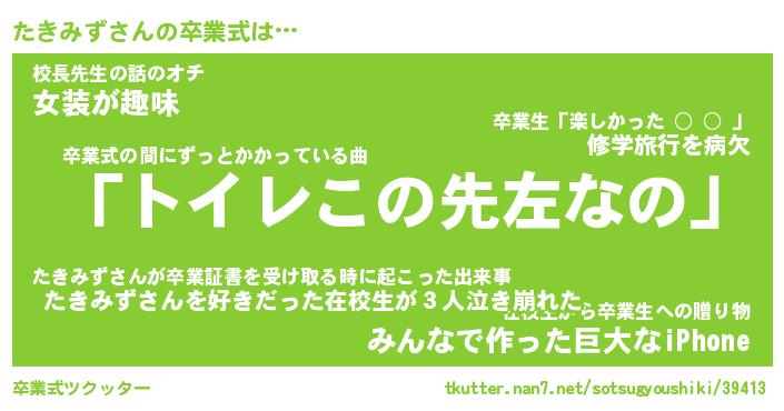 | 意味不明あだ名 | 『ペロリンたきみず』『永久保存たきみず』 |