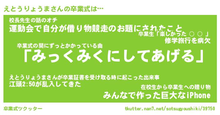 | 伝説のあだ名 | 『伝説のスナイパーえとうりょうま』 |