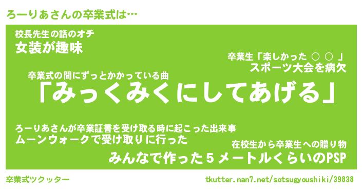 | 肩書あだ名 | 『ろーりあ店長』『ろーりあ総理大臣』 |