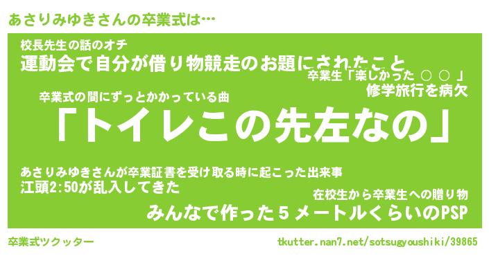 | 男性向けラノベタイトル風あだ名 | 『あさりみゆきの憂鬱』 |