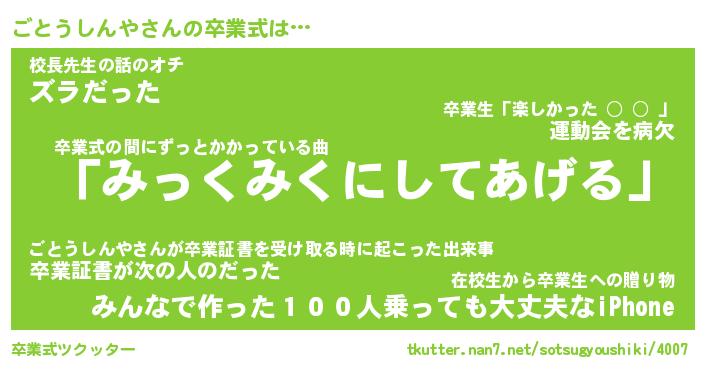 | 伝説のあだ名 | 『伝説のスナイパーごとうしんや』 |