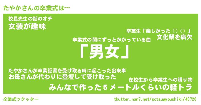 | 男性向けラノベタイトル風あだ名 | 『たやかの憂鬱』 |