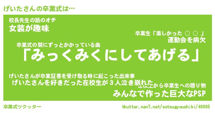 | 伝説のあだ名 | 『伝説のスナイパーげいた』 |