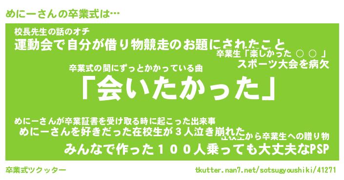 | ヘコむあだ名 | 『めににー』『つくし』『めにぷりん』 |