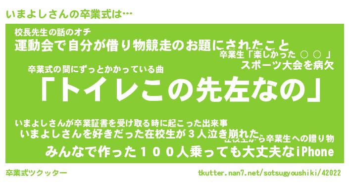 | 伝説のあだ名 | 『伝説のスナイパーいまよし』 |