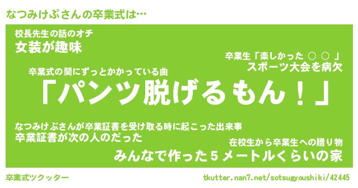 | 伝説のあだ名 | 『不死鳥のスナイパーなつみけぷ』 |