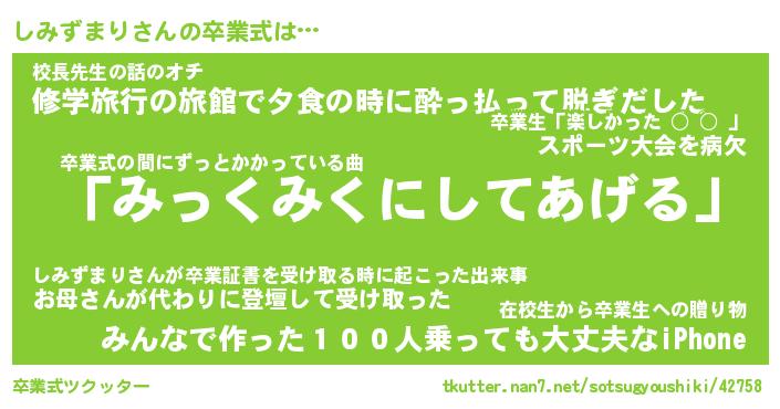 | 伝説のあだ名 | 『伝説のスナイパーしみずまり』 |