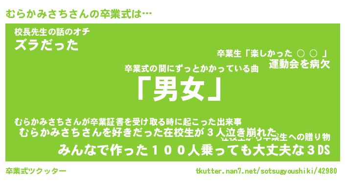 | ピコ太郎風あだ名 | 『ムコ史郎』『ピム十郎』『ムラ次郎』 |