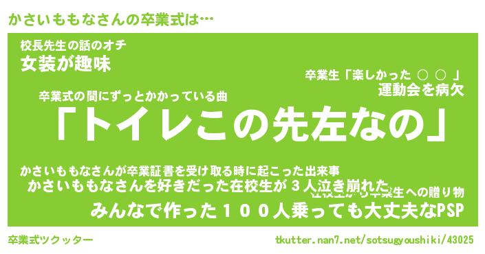| 胡散臭い通販商品みたいなあだ名 | 『必ず成功するブレスレット…その名も「かさいももな」』 |