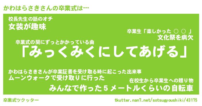| 胡散臭い通販商品みたいなあだ名 | 『必ず成功するブレスレット…その名も「かわはらさき」』 |