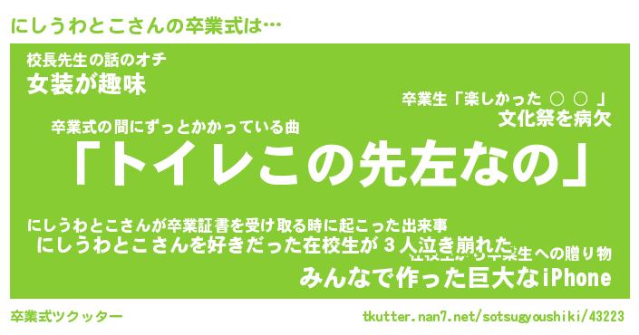 | 胡散臭い通販商品みたいなあだ名 | 『必ず成功する霊験あらたかなお札…その名も「にしうわとこ」』 |