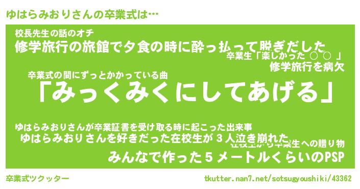 | 胡散臭い通販商品みたいなあだ名 | 『必ず成功するブレスレット…その名も「ゆはらみおり」』 |