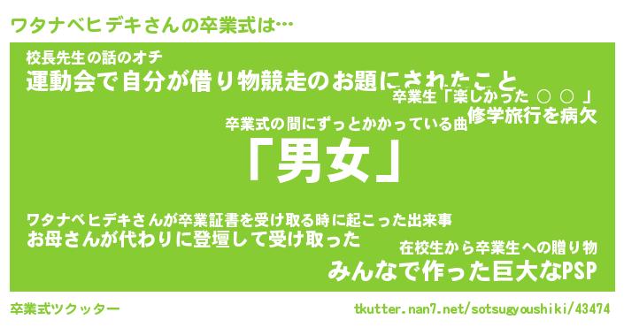 | ピコ太郎風あだ名 | 『ワコ史郎』『ピワ次郎』『ワタ八郎』 |