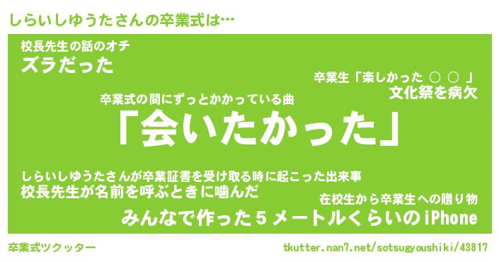 | 伝説のあだ名 | 『不死鳥のスナイパーしらいしゆうた』 |