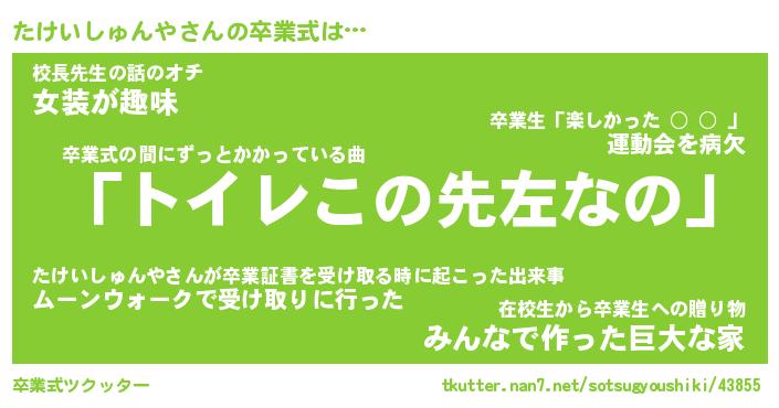 | 伝説のあだ名 | 『伝説のスナイパーたけいしゅんや』 |