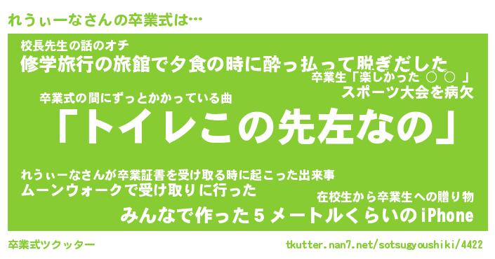 | 胡散臭い通販商品みたいなあだ名 | 『必ず成功するブレスレット…その名も「れうぃーな」』 |