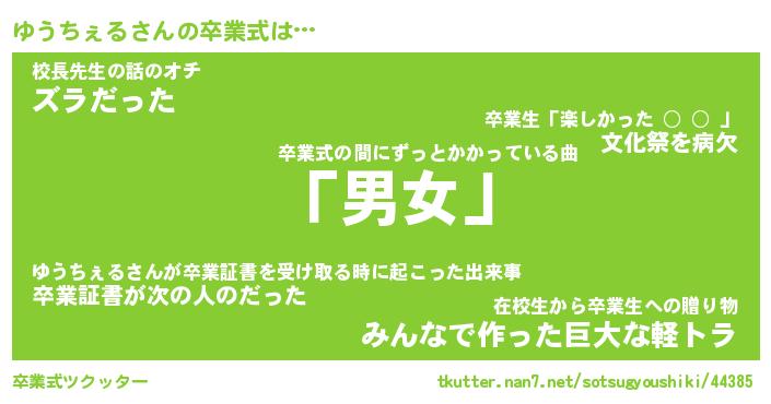 | 女子向けラノベタイトル風あだ名 | 『(仮)ゆうちぇるのやんごとなき事情』 |