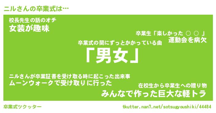 | ヘコむあだ名 | 『ニルもー』『酢こんぶ』『ニル太郎』 |