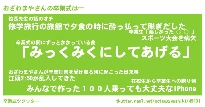 | 伝説のあだ名 | 『伝説のスナイパーおざわまや』 |