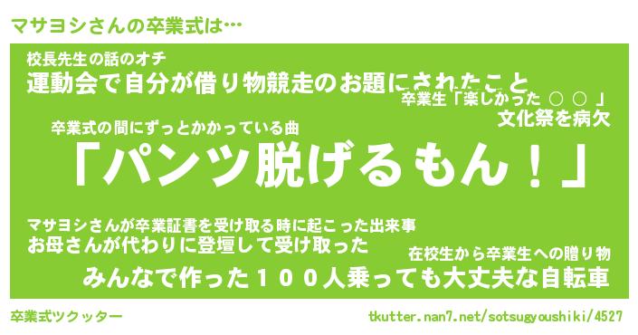 | 意味不明あだ名 | 『ペロリンマサヨシ』『永久保存マサヨシ』 |