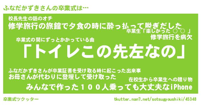 | ヘコむあだ名 | 『ふなにー』『なまこ酢』『ふなお』 |