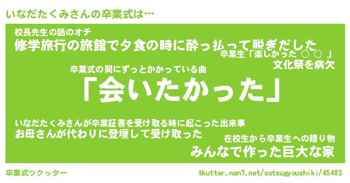 | ヘコむあだ名 | 『いなふぇ~』『牛乳』『いなお』 |