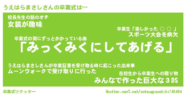| 胡散臭い通販商品みたいなあだ名 | 『必ず成功する霊験あらたかなお札…その名も「うえはらまさし」』 |
