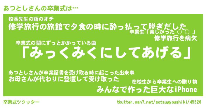 | 意味不明あだ名 | 『ペロリンあつとし』『永久保存あつとし』 |