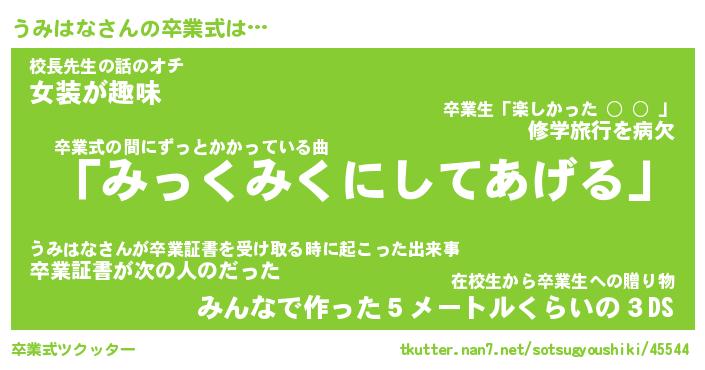 | ヘコむあだ名 | 『うみにー』『酢こんぶ』『うみ太郎』 |