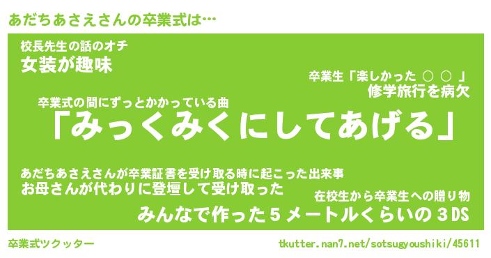 | 伝説のあだ名 | 『伝説のスナイパーあだちあさえ』 |