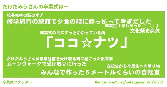 | ヘコむあだ名 | 『たけふぇ~』『豆乳』『たけ太郎』 |