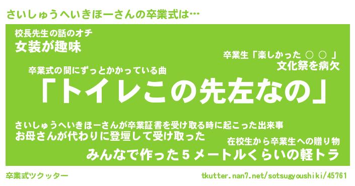 | 胡散臭い通販商品みたいなあだ名 | 『必ず成功するブレスレット…その名も「さいしゅうへいきほー」』 |