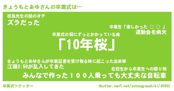 | 伝説のあだ名 | 『封印されしスナイパーきょうもとあゆ』 |