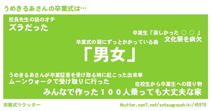 | ピコ太郎風あだ名 | 『ウコ太郎』『ピウ六郎』『ウメ二郎』 |