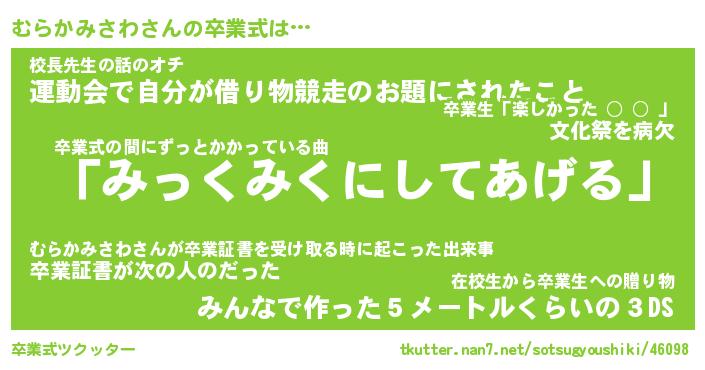 | 伝説のあだ名 | 『伝説のスナイパーむらかみさわ』 |