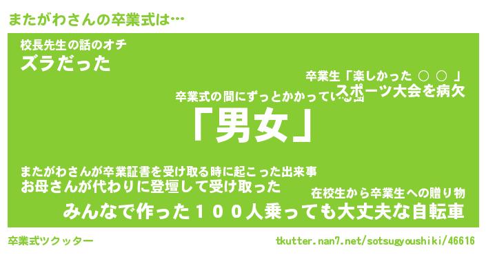 | 男性向けラノベタイトル風あだ名 | 『またがわの憂鬱』 |