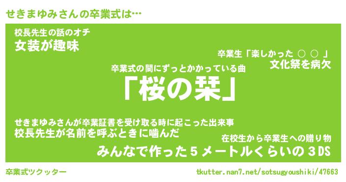| 伝説のあだ名 | 『封印されしスナイパーせきまゆみ』 |