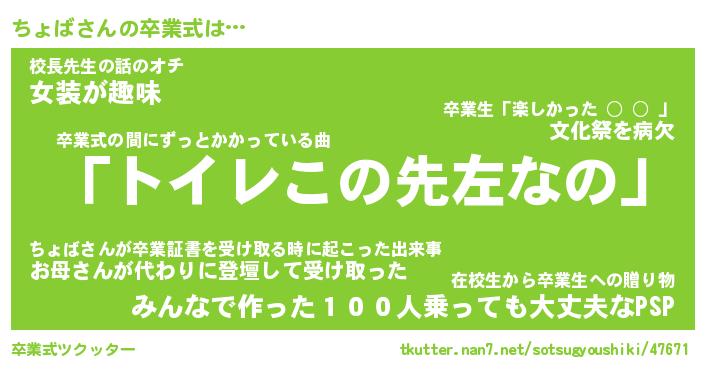 | 伝説のあだ名 | 『伝説のスナイパーちょば』 |