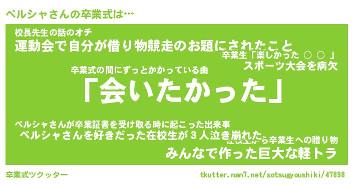 | ヘコむあだ名 | 『ペルっふぃ~』『つくし』『ペルを』 |