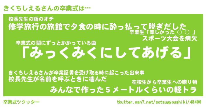 | 伝説のあだ名 | 『伝説のスナイパーきくちしえる』 |
