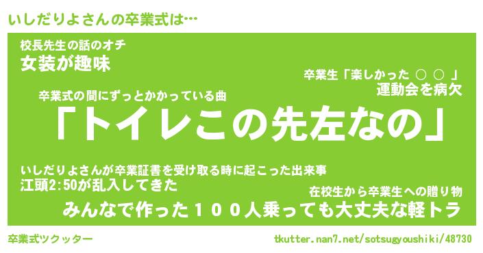 | ピコ太郎風あだ名 | 『イコ五郎』『ピイ三郎』『イシ六郎』 |