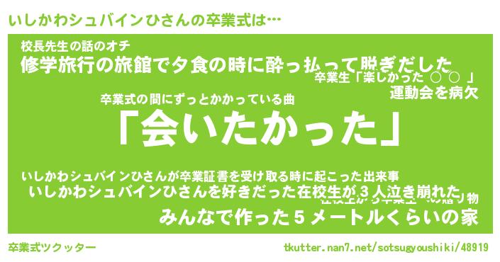 | ヘコむあだ名 | 『いしふぇ~』『牛乳』『いしっ子』 |