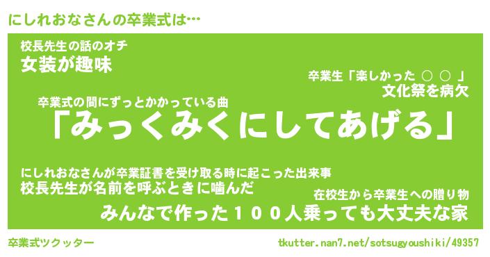 | 恥ずかしいあだ名 | 『プリティーにしれおな』『にしっちょ』 |